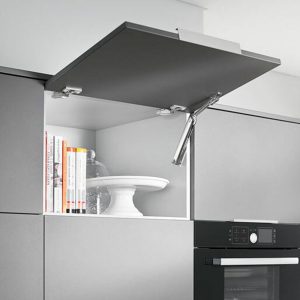 AVENTOS HK-XS is a smaller, cost-effective lift system for shallow wall cabinets, like those above refrigerators and pantries. Its variable stop feature allows the door to stay in any desired position, so it’s always within reach. The lift mechanism can also be used on one or both sides of the cabinet, making it a flexible option for many applications.