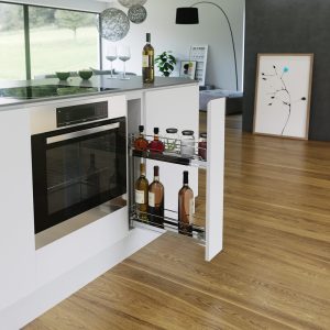 Niches in the kitchen often remain unused – until now. With two stationary shelves, usable as a kitchen stationary, the smallest gap becomes a variable storage space miracle.